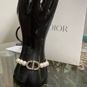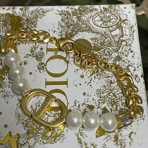 Elegant dior pearl bracelet perfect for any occasion. Features a stunning gold chain and lustrous pearls.