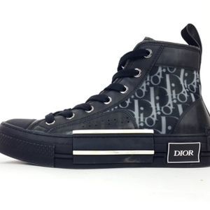 Dior B23 High Top Black Oblique Canvas Leather High Top Sneakers Size 36