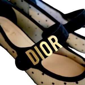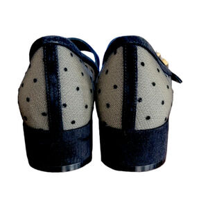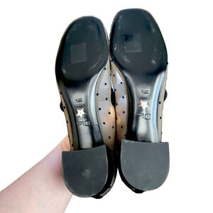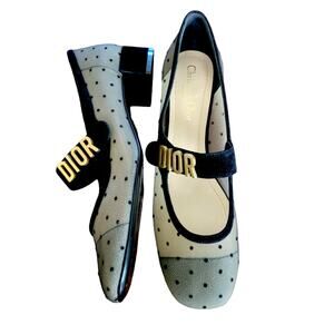 Dior Baby D Mesh Mary Jane Suede Logo Pumps Black Polka Dot Low Heel 8.5 38.5