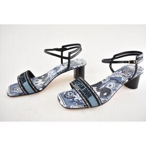 Dior Bandana Embroidered Black Blue Dway Heeled Sandal Strap Low Heel Pump 38.5