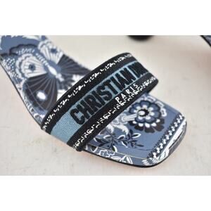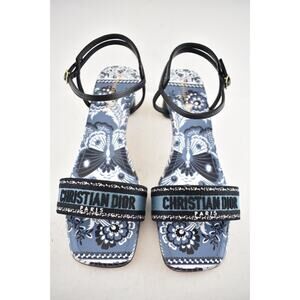 Dior Bandana Embroidered Black Blue Dway Heeled Sandal Strap Low Heel Pump 40