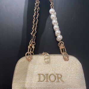 Dior Beauty Cosmetic Bag Toiletry Pouch Tan Gold *** The custom added chains