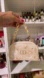 Dior Beauty cream handbag with intricate embroidery floral, butterfly and dragonfly in a mesh material. Features a stylish gold chain handle for style and decor.