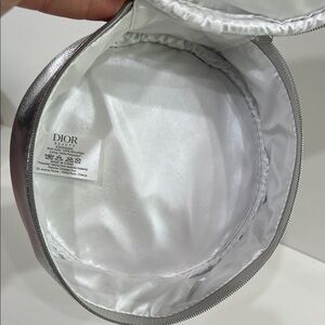 Stylish Dior Beauty vanity bag in shimmering silver. Features iconic logo. Ideal for makeup essentials. EUC, a very tiny rub mark that blends in. See photos. Great gift, just a a few beauty goodies!