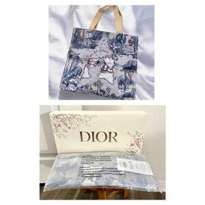 Accepting reasonable offers ASAP! Dior Beauty GWP (Gift with Purchase) Around the World Canvas Straw Large Tote Bag in Navy Blue & Beige Toile Inspired Animal and Map Print Comes NEW and sealed in original packaging. Will also include flat Dior box perfect for gifting! NEW Platinum VIP Birthday Gift NOVELTY 16" x 15"