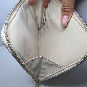 Dior Beige/Cream Fabric Flat Pouch with Embroidered CD logo and gold zipper closure, item is 100% Authentic, made exclusively for Dior Beauty Collection.
