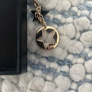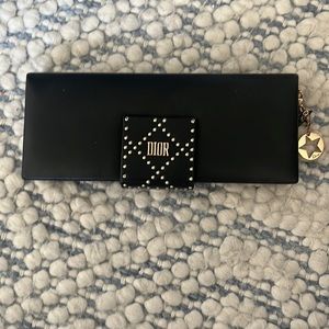 Elegant black Dior cosmetic case. Features studded logo design. Compact and stylish.