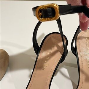 These Dior sandals feature a sleek black design with elegant strappy details, including adjustable ankle straps. The high heel adds a touch of sophistication, making them perfect for special occasions. STUNNING!! Except, like new condition. Size 37.5