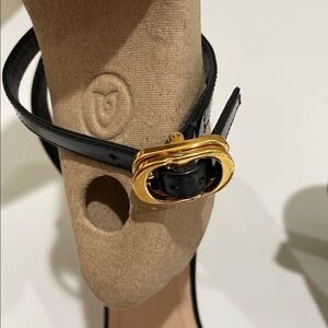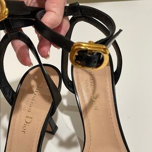 ⭐️Dior Black Leather High-Heeled Sandals with Strappy Design—Gold Logo—GORGEOUS!