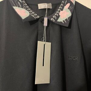 Elegant black polo with distinctive patterned collar. Ideal for versatile wear.