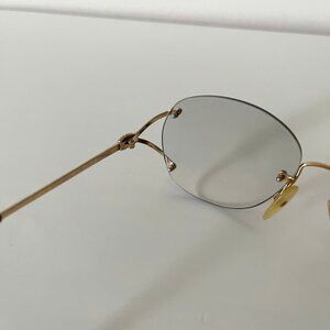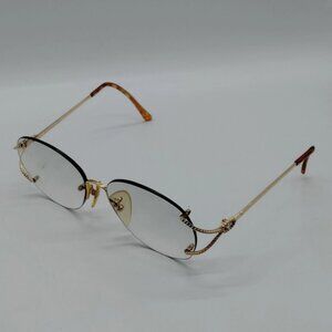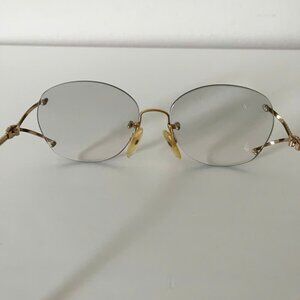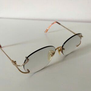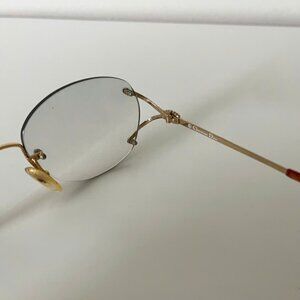 Elegant Dior glasses with black rims and gold detailing. Stylish and sophisticated design.