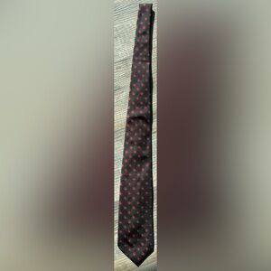 This elegant Dior tie showcases a refined black and red design, crafted from luxurious silk. Its classic pointed end and sophisticated pattern make it an ideal accessory for formal occasions. Elevate your wardrobe with this timeless piece that embodies both style and quality.