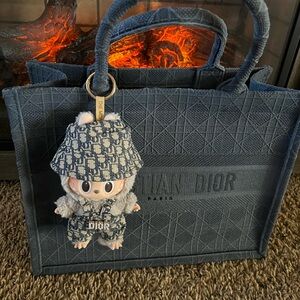 Experience luxury with the Dior Blue Quilted Tote Bag, featuring a sophisticated geometric design and durable fabric. This spacious tote is perfect for everyday use, combining elegance with practicality.FIRM price..minimal signs of use overall is beautiful bag.labubu is not included!