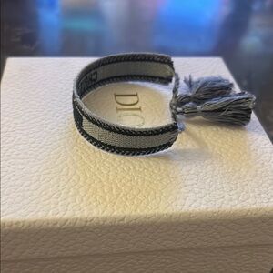 This exquisite Dior bracelet is blue and black. Adjustable tassels for closure. Packaging included.