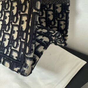 Ecru and Blue Dior Oblique Embroidery medium book tote