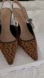 Chic Dior slingback heels with leopard print. Features elegant pointed toe and branded strap.