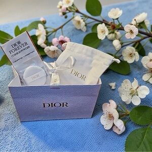 Chic Dior cushion powder set. Includes elegant pouch and Dior gift bag with ribbon.