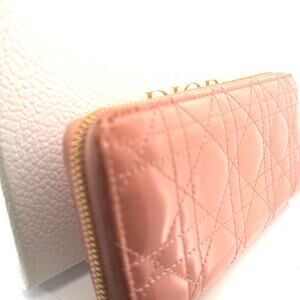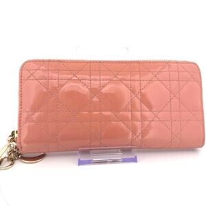 Dior Cannage Patent Leather Zip Wallet in Blush Pink – Full Set