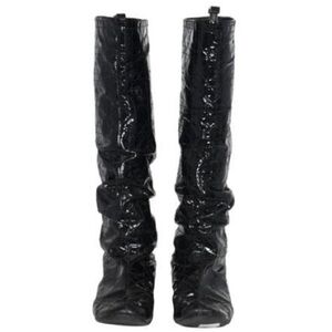 Dior Cannage Quilted Knee-High Flat Scrunched Black Patent Leather Boots