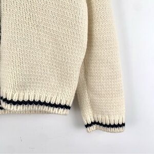 GW0057 Dior beige logo monogrammed appliquéd wool navy collar single-breasted long-sleeve knit cardigan jacket, size 34, 99% NEW!