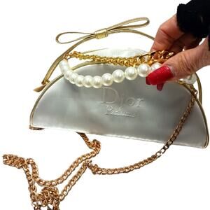 Dior Crossbody Bag WHITE CRESENT Bag LARGE PEARLS STRAND Gold Chain Strap converted CD Cosmetic Pouch perfect for Wedding Prom Gala Event Dressup