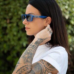 Authentic Dior DIORSIGNATURE S2U 30B0 sunglasses in solid blue frame.