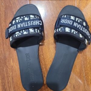Elegant Dior slides in deep blue. Ideal for everyday elegance.