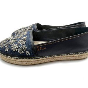 Dior Denim Flower Beaded Espadrilles Flats