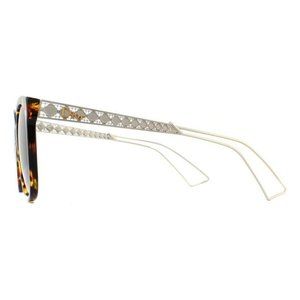 NEW, Christian Dior, Diorama 3 TGY HA style Havana silver and gold sunglasses with cat's eye shaped lenses, plastic, tortoise shell or Havana frames, smoky grey lenses, the original case, dust bag, and shining cloth! A perfect look for you by Dior with a lot of style from the past! Smoky gradient lenses are a feminine cat eye style with an acetate frame front and embellished wire metal temples. 5.25"L x 5.25"W x 2.25"H. All measurements are approximate. N0701