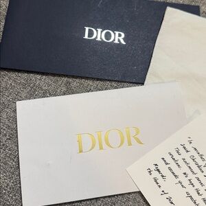 Sophisticated Dior dust bag and cards. Features gold lettering on dust bag