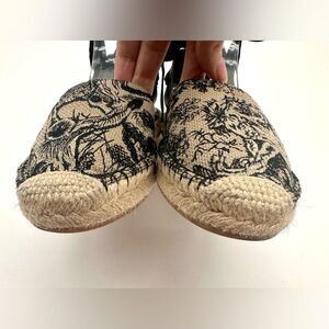 Dior Embroidered Canvas & Leather Ankle Tie Espadrille Flats EU 37.5 US 7.5