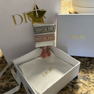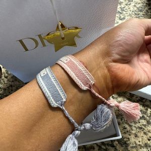 Set includes two Dior Friendship bracelets. One pink and one grey. All items show in photo included; box, ribbon,