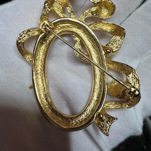authentic signed Christian Dior Oval Brooch with oversized bow. 2" x 1.75"