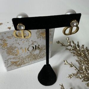 Dior Gold Crystal and Pearl Earrings