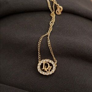 Elegant Dior necklace. Gold chain with crystal-embellished pendant. Perfect for any occasion.