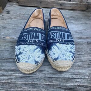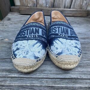 Dior Granville Tie Dye Denim Blue White Logo Embroidered Espadrille Flat 35