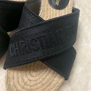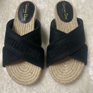 These crisscross mule sandals display a fully embroidered ‘CHRISTIAN DIOR’ signature cotton straps. The slip-on style is set on a handcrafted artisanal rope platform and thin rubber sole with a star emblem, a signature CHRISTIAN DIOR symbol. New in box, kindly do your research on sizing. I feel these run true to size just my opinion, research will be best. Message me for measurements if needed.