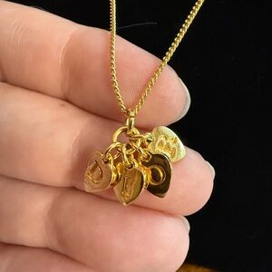 EUC Dior necklace with three heart charms with D I O R Written. Beautiful delicate chain that is adjustable from 15” to 17”. Comes with Dior box.