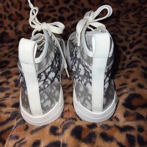 Stylish Dior high-top sneakers featuring a gray and white design. Perfect for casual wear.