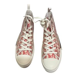 Chic Dior high-tops with a red and cream pattern. Ideal for everyday style.Brand New,dust bag no box