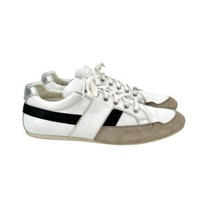 Dior Homme White Black Gray Low Top Suede Trimmed Men's Leather Sneakers sz 42.5