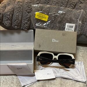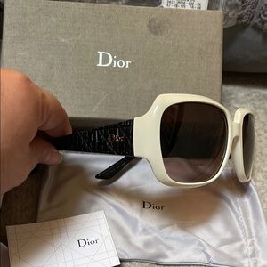Sophisticated Dior sunglasses with an ivory frame. Perfect for a stylish look. Used like new condition box has stain (as seen in picture) glasses are in like new condition