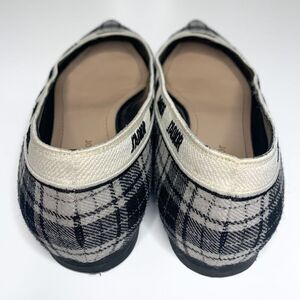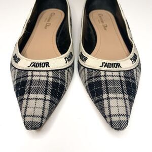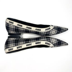 Dior J'Adior Tartan Print Wool Pointed Flats Logo Ribbon Trim EU 39 US 9