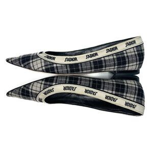 Dior J'Adior Tartan Print Wool Pointed Flats Logo Ribbon Trim EU 39 US 9 Black
