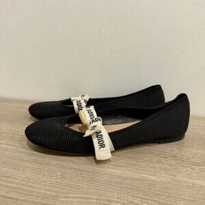 DiorJ'Adior Textured Fabric Bow Round Toe Ballerina Flats Black Women's EU 36.5
