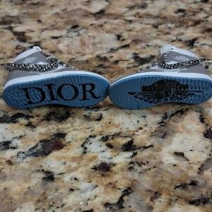 Chic Dior high-tops in gray and white. Stylish and comfortable for everyday wear. Use a hair dryer for 20 seconds to tighten on your labubu's feet.