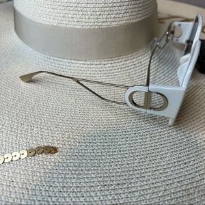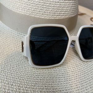 Dior Large Ivory Sungasses w/ Gold Details & Blue Lenses, “30 Montaigne 2”