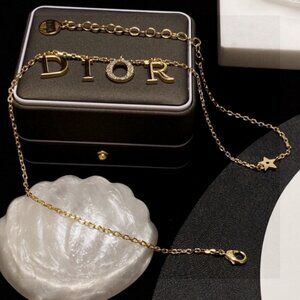 This lustrous gold-tone letter charm necklace by Dior is a testament to exquisite design, featuring the brand’s name with a glittering ‘O’.