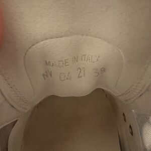 White and beige rubber outsole and reinforced toe with two-tone insert