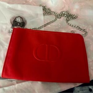 Dior Make Up Pouch Clutch in Vibrant Red with Crossbody conversion Novelty GWP